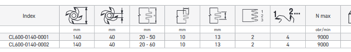 - ∅ D [mm] - Średnica freza: 0140