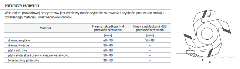 - szczególnie zalecane do frezowania drewna miękkiego mokrego, świeżego lub średnio twardego