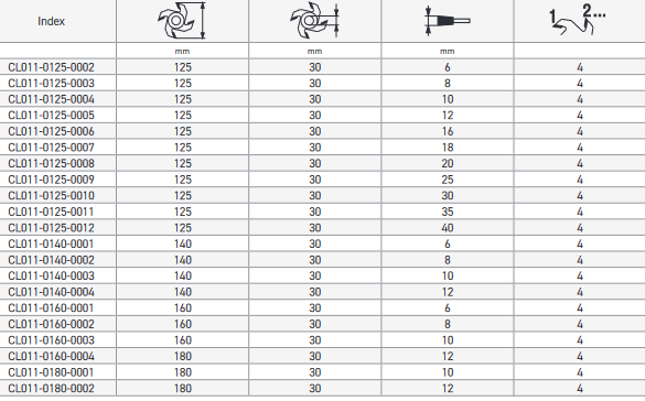 - szeroka gama typowymiarowa (średnica / szerokość węglika) pozwalająca na dobór odpowiedniego narzędzia do danej obróbki oraz typu maszyny