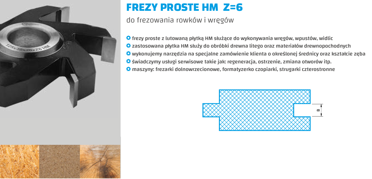 - Frez prosty z lutowaną płytką HM służący do wykonywania wręgów, wpustów, widlic.