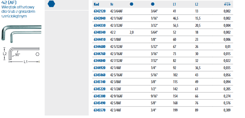 Klucz imbusowy calowy 42 (AF) GEDORE