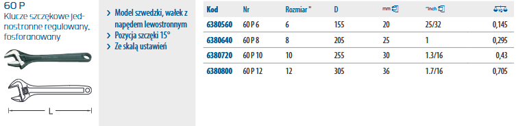 Charakterystyka klucza nastawnego szwedzkiego 60 P GEDORE: