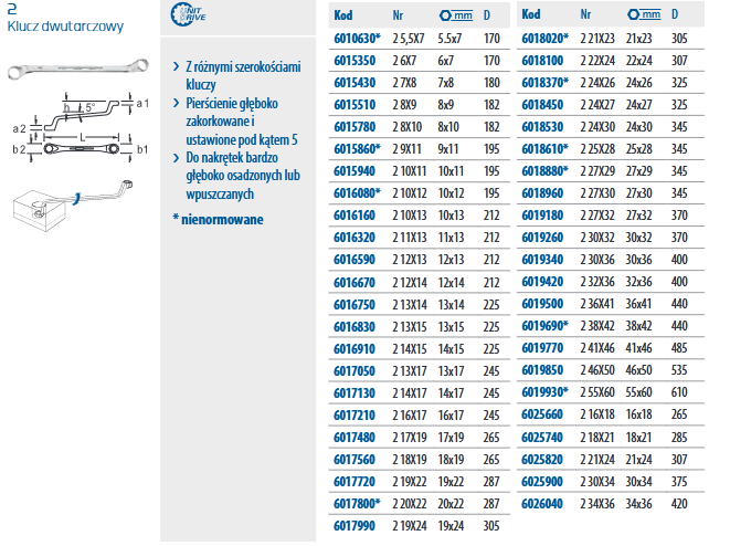 Charakterystyka klucza oczkowego dwustronnego Profil-UD 2 (MM) GEDORE: