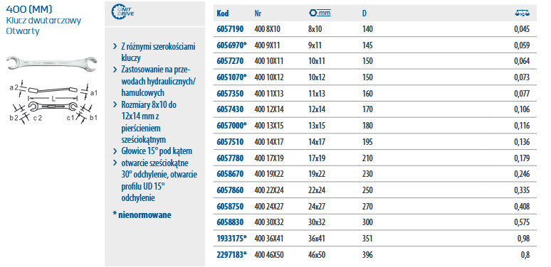 Charakterystyka klucza oczkowego dwustronnego otwartego 400 (MM) GEDORE: