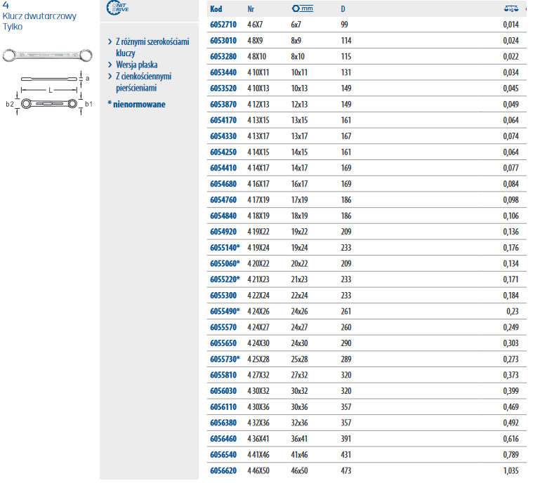 Charakterystyka klucza oczkowego dwustronnego prostego 4: