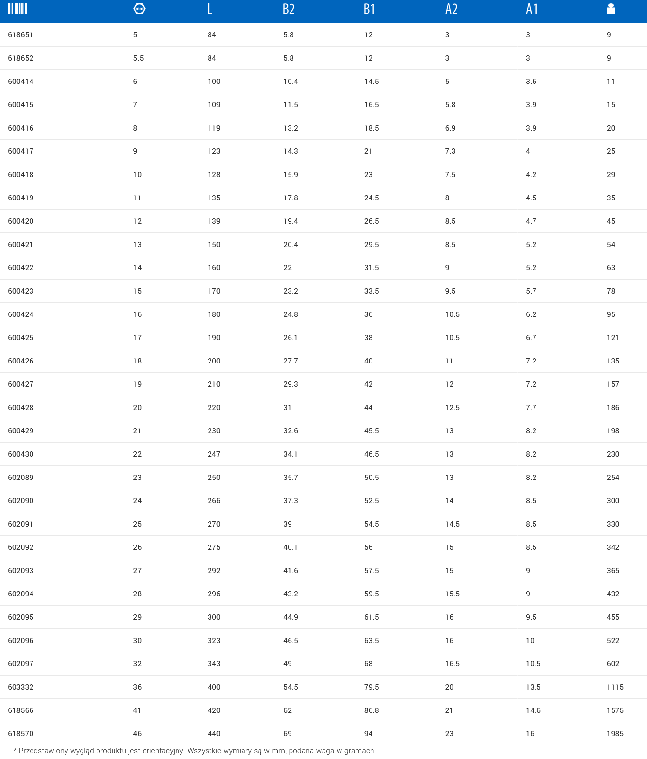 - wykonane zgodnie ze standardem ISO 3318 w 3113A (wyłącznie rozmiary metryczne )