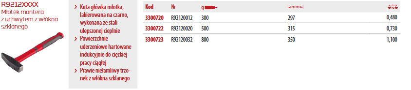 Charakterystyka młotka R9212XXXX: