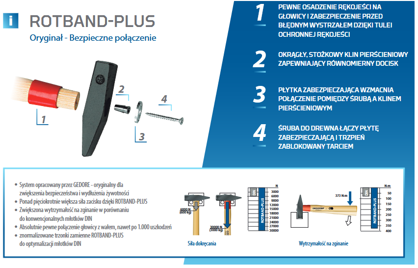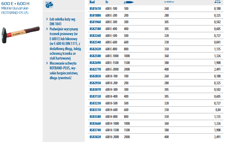 Charakterystyka młotka ślusarskiego rotband-plus 600 E + 600 H GEDORE: