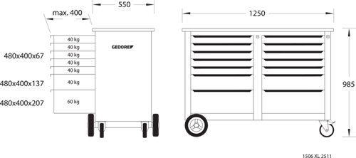 Mobilny stół warsztatowy ekstra szeroki 1506 XL 2511 GEDORE