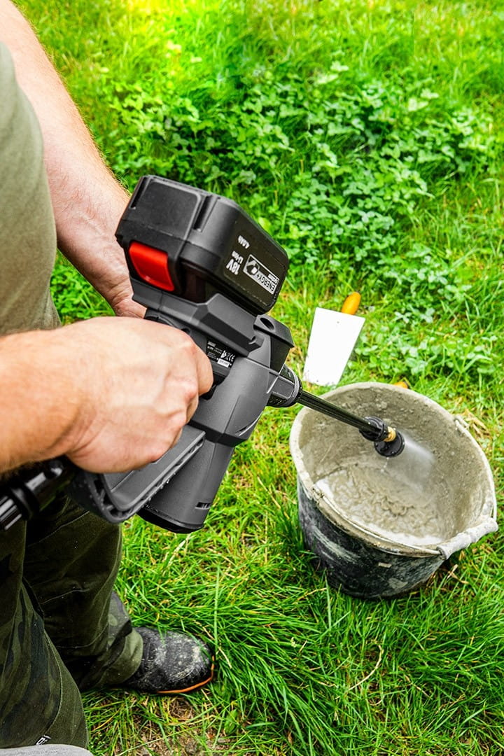 - Myjka ciśnieniowa akumulatorowa GRAPHITE współpracująca z akumulatorami 18V Li-Ion GRAPHITE Energy+