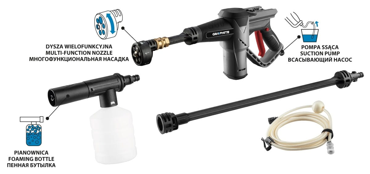 Charakterystyka myjki ogrodowej akumulatorowej GRAPHITE: