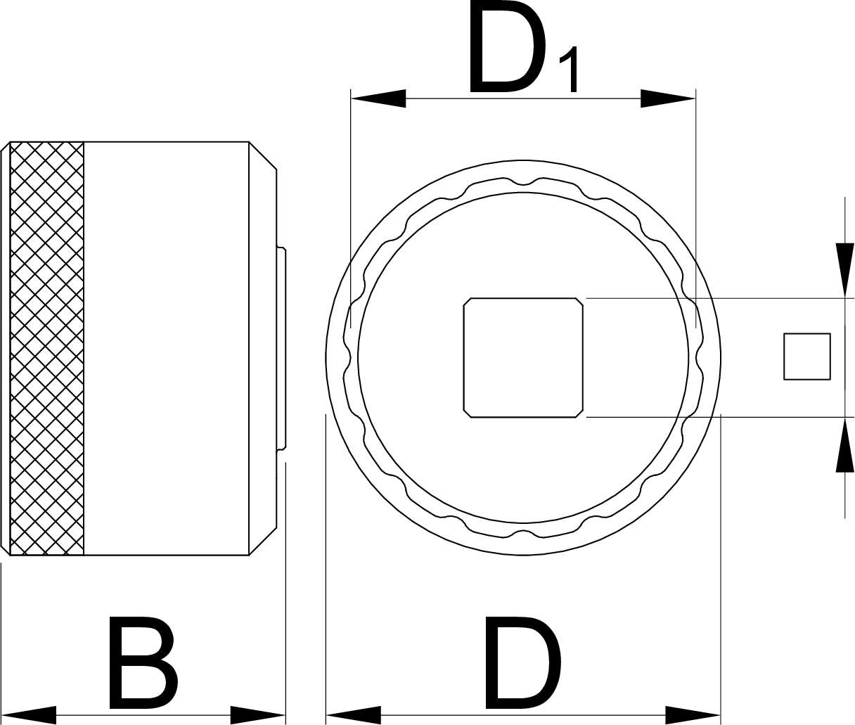 - Radełkowanie z boku nasadki zapewnia lepszą przyczepność, podczas ręcznego dokręcania, a gniazdo ułatwia stosowanie kluczy dynamometrycznych, grzechotek i pokręteł.
