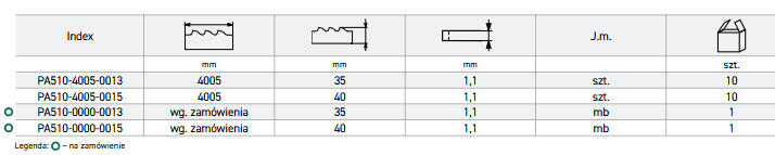 - piły produkowane są w wersji hartowanej, ostrzonej, rozwieranej, szlifowanej (HORS)