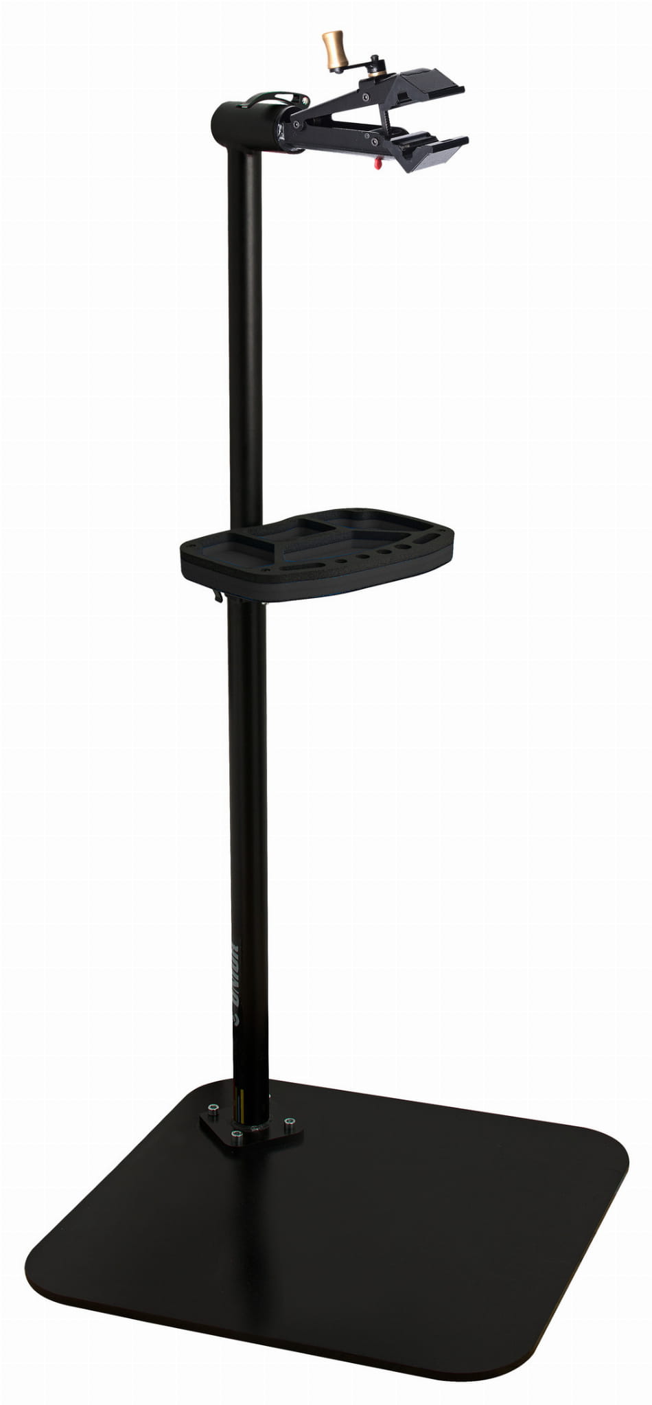- Płyta podstawy jest zaprojektowana ergonomicznie. Maksymalna nośność wynosi 30 kg, co umożliwia serwisowanie cięższych rowerów górskich.