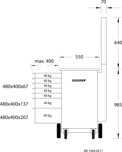 Przewoźny stół warsztatowy BR 1504 0511 LH GEDORE