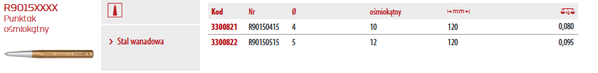 Charakterystyka punktaka R9015XXXX GEDORE RED: