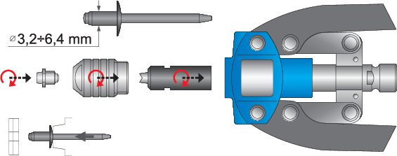 - 5 końcówek do nitonakrętek od M4 do M10 (R5/32" – R3/8")