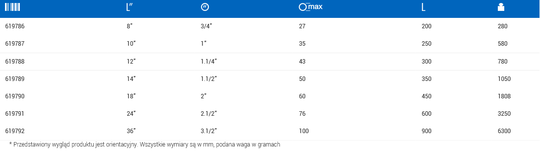 Charakterystyka regulowanego klucza do rur 494/6 UNIOR: