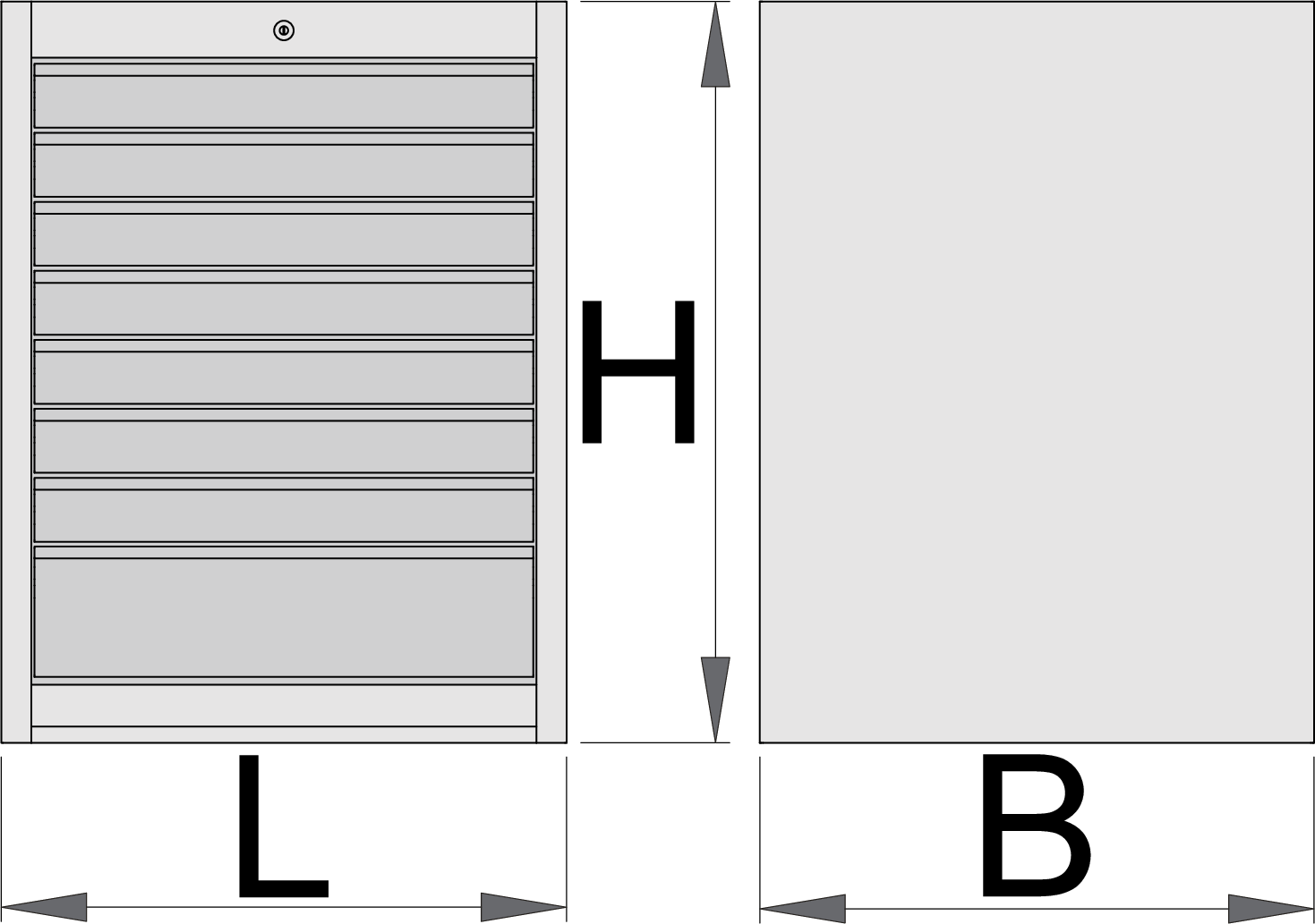 - 8 szuflad (7 o wymiarach 564x570x70mm, jedna o wymiarach 564x605x150mm)