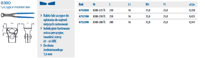 Charakterystyka szczypiec Monierskie 8380 GEDORE: