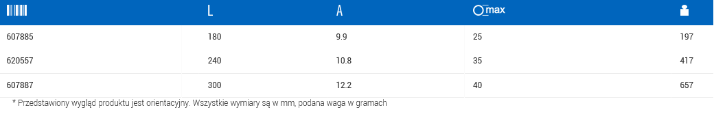 - szczęka regulowana w 5 pozycjach - rozmiar 180, rozmiar 240 i 300 w 6 pozycjach