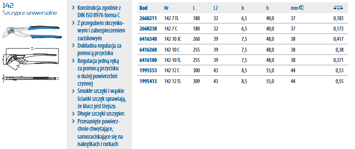 - Smukłe szczęki i wąskie ścianki szczęk sprawiają, że klucz jest lżejszy