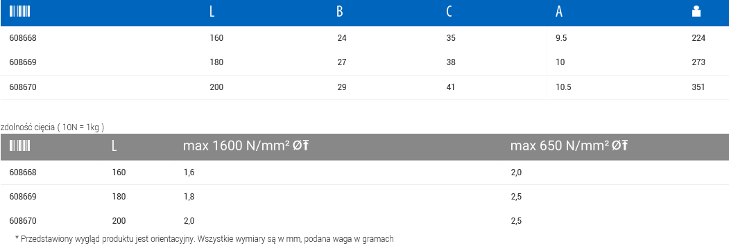 Charakterystyka szczypiec uniwersalnych 405/4G UNIOR: