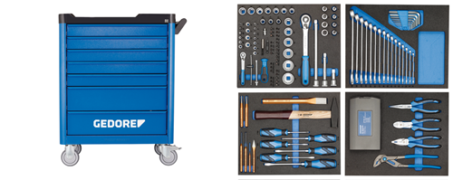 Wózek narzędziowy workster smartline z zestawem narzędzi w modułach CT 147-częściowy WSL-L-TS-147 GEDORE