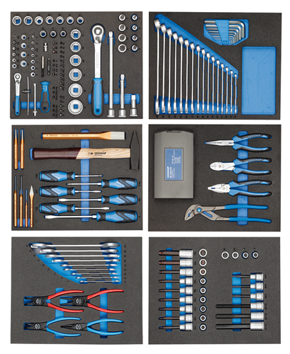 - Z systemem Gedore Check-Tool: Zapewnia kontrolę kompletności dzięki zastosowaniu 2-kolorowych wkładek piankowych