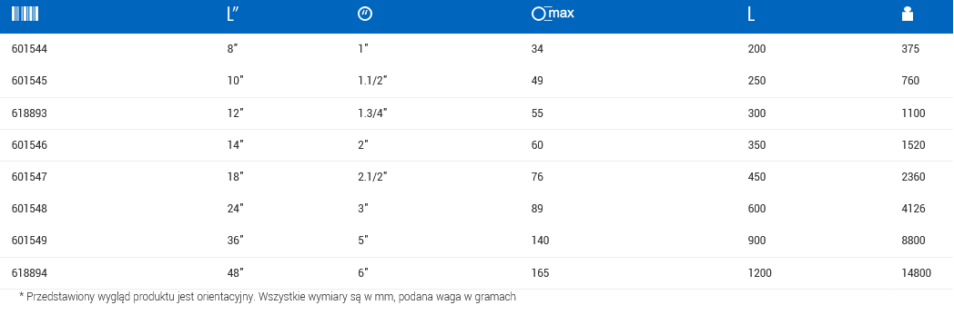 Charakterystyka wzmocnionego klucza do rur 200mm 492/6 UNIOR: