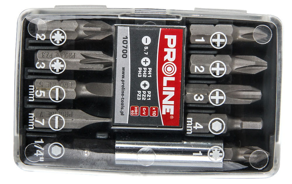 Zestaw 10 sztuk końcówek z uchwytem magnetycznym PROLINE