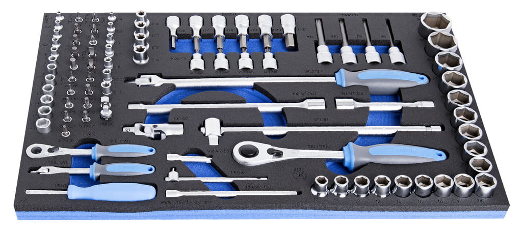 - 18x nasadka 1/2", 6-kątna (art. 190/1 6P) dim.: 10, 11, 12, 13, 14, 15, 16, 17, 18, 19, 20, 21, 22, 23, 24, 27, 30, 32