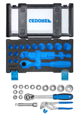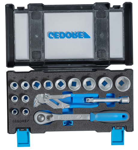 Zestaw kluczy nasadowych 1/2" ze szczypcami, 18-częściowy 19 DMU 183 GEDORE