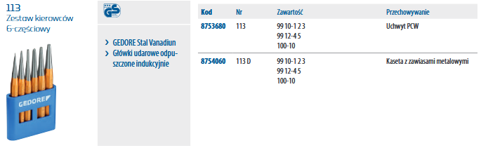 Zestaw punktaków 6-częściowy 113 GEDORE